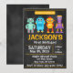 Invitación de cumpleaños divertido robot estilo pizarra. Esta invitación puede ser para cualquier ocasión, ya sea un primer cumpleaños o un décimo cumpleaños.