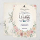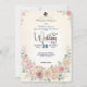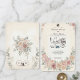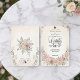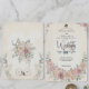 Romantic blush roses and soft watercolor botanicals frame a graceful proposal silhouette, creating an elegant boho garden aesthetic for a spring wedding announcement.This design reflects traditional romantic wedding stationery styling, where a floral frame gently surrounds the central text area. Soft watercolor peonies and ranunculus in dusty blush, rose pink, and peach tones blend with airy eucalyptus greenery in muted sage, creating a balanced botanical composition. The background appears as a warm cream parchment tone, giving the layout a refined, heritage-inspired look often seen in classic garden wedding stationery.At the center of the design, an elegant silhouette of a couple proposing adds a narrative focal point, while flowing script lettering paired with a modern serif typeface establishes a hierarchy commonly used in formal invitation layouts—script for emotional emphasis and serif text for readability.This is a flat printed image with a faux parchment watercolor texture effect, not actual raised or textured material.
