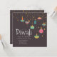 Diseño festivo de Diwali con colores sutiles y un dulce ilustracion de profundidades colgantes, luces intermitentes y estrellas.