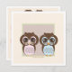 Infórmese a sus huéspedes sobre la gran novedad de este diseño que presenta un dulce ilustracion de dos adorables búhos bebés - un niño y un chica. Personalizares fácilmente con su información y su conjunto! Los artículos que coinciden incluyen franqueo, tarjetas de agradecimiento y pegatinas para sellar las invitaciones o invitaciones de la ducha de bebé.