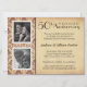 Hermosas invitaciones para la fiesta del 50 aniversario de bodas con inserciones enmarcadas para dos fotos sobre fondo de pergamino simulado vintage rústico y borde de damasco. Sube tus fotos y agrega los nombres, fecha y detalles. Cambia el texto para personalizarlo fácilmente para otras ocasiones especiales y celebraciones de hitos felices: fiestas sorpresa del 25, 30, 45, 60, 65, 70 aniversario, fiesta de cumpleaños, bodas, guardar la fecha o cualquier evento único. Tamaño mostrado: Grande - 6.5 x 8.75 pulgadas. Haz clic en Personalizar para cambiar el tamaño y las opciones de acabado del papel.