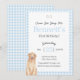 Celebrate your little one’s first birthday with this sweet and playful Puppy Dog First Birthday Invitation! Featuring a charming watercolor puppy, classic blue gingham, and the adorable phrase “Come. Sit. Stay.”, this design is perfect for dog-loving families and puppy-themed parties.