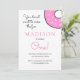 ¡Qué adorable es esta linda invitación de cumpleaños de dona rosa! Es perfecta para invitar a los invitados a ayudar a celebrar que cumple uno. Suministros de fiesta a juego disponibles.