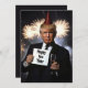 Donald Trump suena en Año Nuevo con un gorra fiesta festivo, una copa de champán y un audaz cartel de "Feliz Año Nuevo". Los vibrantes fuegos artificiales de fondo amplifican el ánimo de celebración.
