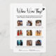 ¿Dónde Estaban? Juego de ducha de novia | Elegante Invitación a adivinar la foto de la boda Trae diversión, recuerdos y un pequeño misterio a tu celebración con nuestro ¿Dónde estaban? Juego de ducha de novia | Elegante invitación a adivinar fotos de bodas — una actividad creativa y reconfortante que invita a los invitados a adivinar la ubicación de las fotos con la novia y el novio. Diseñado con elegancia minimalista, acentos florales o acuarelas opcionales y caligrafía de escritura moderna, este juego añade encanto y risa a cualquier reunión pre-boda. Perfecto para duchas de novias, duchas de parejas, fiestas de soltera o celebraciones de compromiso, este juego basado en fotos muestra una serie de fotos de la pareja a lo largo de su relación -desde viajes hasta momentos cotidianos- y desafía a los invitados a adivinar dónde se tomó cada foto. Es una manera dulce de revivir la historia de la pareja y encender la conversación entre los invitados. Personalizar la tarjeta con el nombre de la novia, la fecha del evento o los toques temáticos para que coincidan con estilos como boho bridal, floral moderna o minimalismo romántico. Incluso puede agregar un mensaje o instrucciones sobre cómo reproducir. Imprimido en material de cartón de alta calidad o ofrecido como una descarga digital de impresión en casa, este juego funciona perfectamente en mesas de invitados, en bolsas de favores o como parte de una estación de actividades de ducha de novias. También es un placer para la pareja. 🖤 Haga clic en Personalizar ahora para crear su Dónde estaban? Juego y haz que tu ducha nupcial esté llena de momentos significativos y de sorpresas divertidas. donde estaban los partidos de novias, juegos de ducha con adivinanzas de novias, elegante actividad de ducha de boda, adivinen el juego de la ubicación, el desafío de la foto de la ducha de novia, juegos de memoria de viaje de parejas, floral de novias, juegos de ducha boho de boda, moderna ducha de novia imprimible, divertido juego de collage de fotos de novia