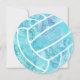 Esta encantadora invitación a una fiesta redonda con temática de voleibol tiene un tema de color turquesa con acentos azules y verde azulados y muestra la imagen de un simple voleibol - un delicado patrón de doodle de paisajes, flores y plumas con cubiertas blancas, todos menos uno de los paneles de estilo texturizado del voleibol - personalizable con sus detalles de celebración - por katz_d_zynes