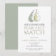 Doodle Pears Pear-fect Match Bridal Shower. Available digitally and printed. Whimsical scribbly pears with sage green accents with large typography for the heading, play on words for Perfect.