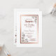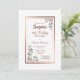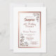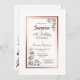 Elegante rosa de oro/cobre bordeado de sorpresas florales 40 cumpleaños cena invitación con adornos florales de oro cálidos en las esquinas diagonales y texto en burdeos.