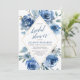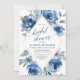 Invitación Dorado azul peonías acuarela elegante ducha novia