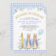 Invitación Dorado Blue Twins Floral Peter Rabbit 1 cumpleaños