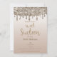Invitación Dorado Champagne Brillante Goteo Glam Dulces 16 Di