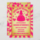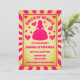 Una carta retro inspirada en la Reina de los Corazones y Alicia en el diseño de la fiesta de cumpleaños con temática de tierra maravillosa en una paleta de colores rosa y dorado brillante con detalles de corazón y diamantes.