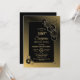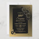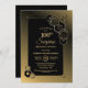 Una moderna cena geométrica en negro y oro enmarcada en sorpresiva invitación a la cena de cumpleaños número 100.
