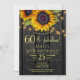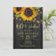 Rústico país fiesta de cumpleaños 60 años elegante plantilla de invitación sobre fondo de madera de grano marrón oscuro con grandes ramos de girasoles dorados amarillos, cuerdas de luces intermitentes y un falso guión de tipografía de oro. ++++++++++++++ Fácil de personalizar con tus detalles! Puede optar por personalizar de los tipos de letra y los colores de las letras. ++++++++++++ La invitación es adecuada para el jardín al aire libre / patio interior rústico brunch / barbacoa verano o otoño otoño otoño fiesta de cumpleaños