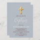 Invitación Dorado Moderno Simple Dusty Blue Cross Baptism