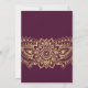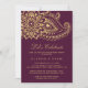 Esta tarjeta de invitación de paisley indio dorado Celebremos es perfecta para un evento elegante. El diseño de mehndi presenta un hermoso mandala floral de henna y un motivo de paisley sobre un fondo borgoña. Esta invitación se puede personalizar para una fiesta de compromiso, despedida de soltera o cualquier evento o fiesta.