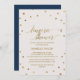 Esta tarjeta de invitación a la ducha de lencería dorada de polka es perfecta para una elegante ducha nupcial. El diseño es sencillo y está decorado con confeti de oro de moda sobre un fondo de champán cremoso con una hermosa caligrafía de Relieve metalizado de oro falso y un respaldo azul marino. Nota: Este diseño no tiene Relieve metalizado oro real. Es un gráfico de alta calidad hecho para parecer un Relieve metalizado dorado.