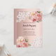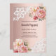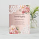 Una elegante invitación de 50 años para las mujeres. Un fondo de degradado de oro rosa decorado con flores de oro rosa y rosa, rosas y encaje. Personalice y agregue un nombre y detalles del fiesta.