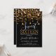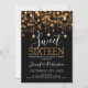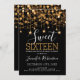 Elegante planilla de invitación Gold & Black Sweet 16 Birthday Party Sparkly String Lights.