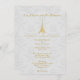 Invite a los huéspedes a su cena de ensayo con una invitación a cenar a la Torre Eiffel de Oro en Damasco. El diseño de la invitación se basa en la Torre Eiffel, con un delicado fondo de encaje damasco. Personalice los nombres del novio y la novia junto con los detalles del ensayo de la cena. También hay material de boda adicional disponible con este diseño.
