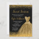 Invitación Dorado Vestido Faux Purpurina Dulce 16 Cumpleaños