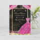 Invitación Dorado y Purpurina rosa vestido dulce dieciséis