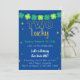 Dos Invitaciones de Aniversario Afortunado Segundo, Día de San Patrón con temática de shamrock, estrellas de oro y puntos verdes y dorados. Colores de fondo: blanco y azul | Todos los diseños son © Dream Design Panamá