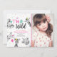 Establezca el tono de su fiesta con estas elegantes invitaciones con un tema Fiesta Animals Two Wild. Por el cumpleaños de un chica.