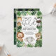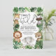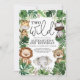 Celebra el segundo cumpleaños de tu niñito con esta caprichosa invitación de fiesta de temática safari. El diseño se compone de un grupo de adorables animales de la selva y de una exuberante vegetación tropical acuática