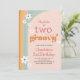 Invitación Dos Chicas Groovy Retro Daisies segundo cumpleaños