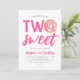 Invite a los huéspedes a su fiesta de 2º cumpleaños con estas dulces invitaciones de cumpleaños con temática de donut. La encantadora fiesta de cumpleaños invita a incluir la frase "Dos dulces" en letras rosas brillantes con la "o" reemplazada por una donut color agua rosa con rociadores multicolores. Personalice las dos invitaciones de cumpleaños de donut dulce con el nombre y los detalles del fiesta de su hijo.