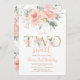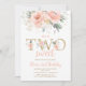 Dos dulces invitaciones Rubor Pink Floral Gold de segundo cumpleaños