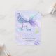 Invitación de cumpleaños temática "Bajo el mar". Colores acuáticos de tonos morados y azules pastel, con una cola de sirena juguetona, peces payasos y corales.