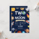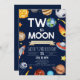 ¡Esta es una invitación a la fiesta de cumpleaños número dos en el espacio exterior de la luna azul!