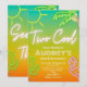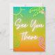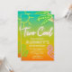 Diseño de invitación vibrante y animado que combina elementos tropicales con colores neón atrevidos. Es perfecto para eventos como fiestas en la piscina, fiestas hawaianas, celebraciones de cumpleaños o cualquier ocasión en la que desees infundir diversión y emoción