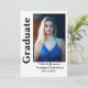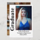 Esta elegante y moderna invitación para la fiesta de graduación incluye dos fotografías de la graduada. Una al frente y otra en la parte posterior. El nombre de la graduada, la escuela y el año de graduación están escritos en un guión informal moderno en blanco y negro. En la parte trasera. Una invitación de graduación elegante y directa que presenta las fotos personales favoritas de su graduado.