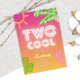 Diseño de invitación vibrante y animado que combina elementos tropicales con colores neón atrevidos. Es perfecto para eventos como fiestas junto a la piscina, fiestas hawaianas, celebraciones de cumpleaños o cualquier ocasión en la que desees infundir diversión y emoción