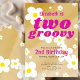 Invitación Dos Groovy 2º cumpleaños Tan poder de flor Hippie