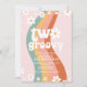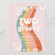 Invitación de 2º cumpleaños inspirada en Retro con arcoiris de estilo hippie, daisies y fuentes boho y colores.