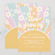 Invitación Dos groovy pastel retro sol margarita boho floral