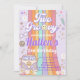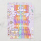 Invitación Dos Groovy Retro Daisy Arcoiris segundo cumpleaños