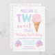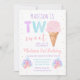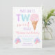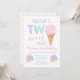 Esta encantadora invitación cuenta con un cono de helado y globos en tonos arcoiris pastel con confetti de Relieve metalizado de oro falso.