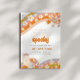 ¡Vamos, demonios! Celebra el segundo cumpleaños de tu pequeño ghoul con la temática de halloween con nuestra invitación de 2º cumpleaños "dos espeluznantes" retro. Este diseño tiene un fantasma adorable, una bola de discoteca, flores y signos de paz en una paleta de colores boho y muy groovy. Este diseño es perfecto para una celebración de halloween de moda pero no tan aterradora.