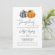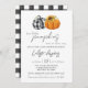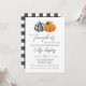 ¡Hay dos calabazas en camino! Celebra a la futura madre con una invitación a una ducha de bebé con temática de otoño. Dos lindas calabazas con manta de búfalo negra y naranja clásico añaden un poco de encanto rústico y original a la invitación. Un girasol adorna la calabaza naranja. La parte trasera tiene una funda de búfalo blanca y negra. Todos los detalles se pueden personalizar. Esta es la invitación perfecta para una ducha de bebé de otoño neutra de género para los gemelos.
