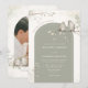 Celebre la fe, el amor y la unidad con la invitación de boda cristiana "Dos son mejor que uno", bellamente diseñada en suave verde salvia y tonos neutros elegantes. La parte delantera de la invitación muestra un diseño de arco elegante, enmarcando los detalles de su boda en un diseño moderno y atemporal. En la parte trasera, un marco de arco coordinado contiene su foto favorita, creando un hermoso recuerdo para sus invitados.