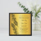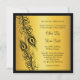 Dos plumas de pavo real intrincadamente ilustradas resaltan esta invitación, en un fondo de oro ilustrado. com
