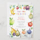 Haz el segundo cumpleaños de tu pequeño aún más dulce con esta adorable Invitación para el Cumpleaños 2 de Two-tti Frutti, que presenta encantadores personajes de frutas en acuarela. Perfecta para un cumpleaños con tema de tutti frutti, este diseño colorido y alegre incluye plátanos felices, manzanas, aguacates, cerezas, arándanos y más, cada uno con un sombrero de fiesta y listo para celebrar.