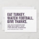 Come pavo, mira fútbol, da gracias. Diseñada para coordinar con la moderna colección de ayuda de Lea Delaveris Design, esta invitación de Acción de Gracias con texto en negrita en púrpura de ciruela puede ser editada para adaptarse a tu propio sentido del humor o estilo. También está disponible como descarga digital de invitación de Acción de Gracias.