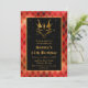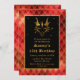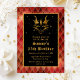 Esta elegante y glamorosa invitación de cumpleaños incluye un falso dragón purpurina de oro en un fondo de la escala de dragones rojos. El texto combina tipos de letra decorativos y angustiados para un aspecto histórico y medieval. Los acentos purpurinas y los elementos de fantasía crean la perfecta combinación de inglés moderno y antiguo.