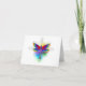 Luminosa, arco iris, libélula poligonal sobre fondo blanco, pintada con acuarela.
